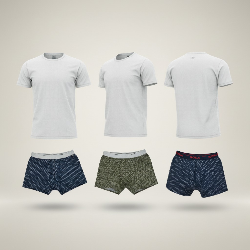 Be the first to review “عرض 3 بوكسر ألوان +3فانلة نص كم ابيض”