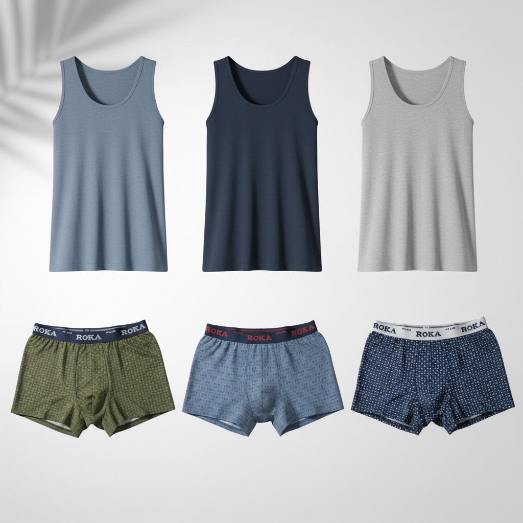 Be the first to review “عرض 3 فانلة حمالات ألوان + 3 بوكسر ألوان”